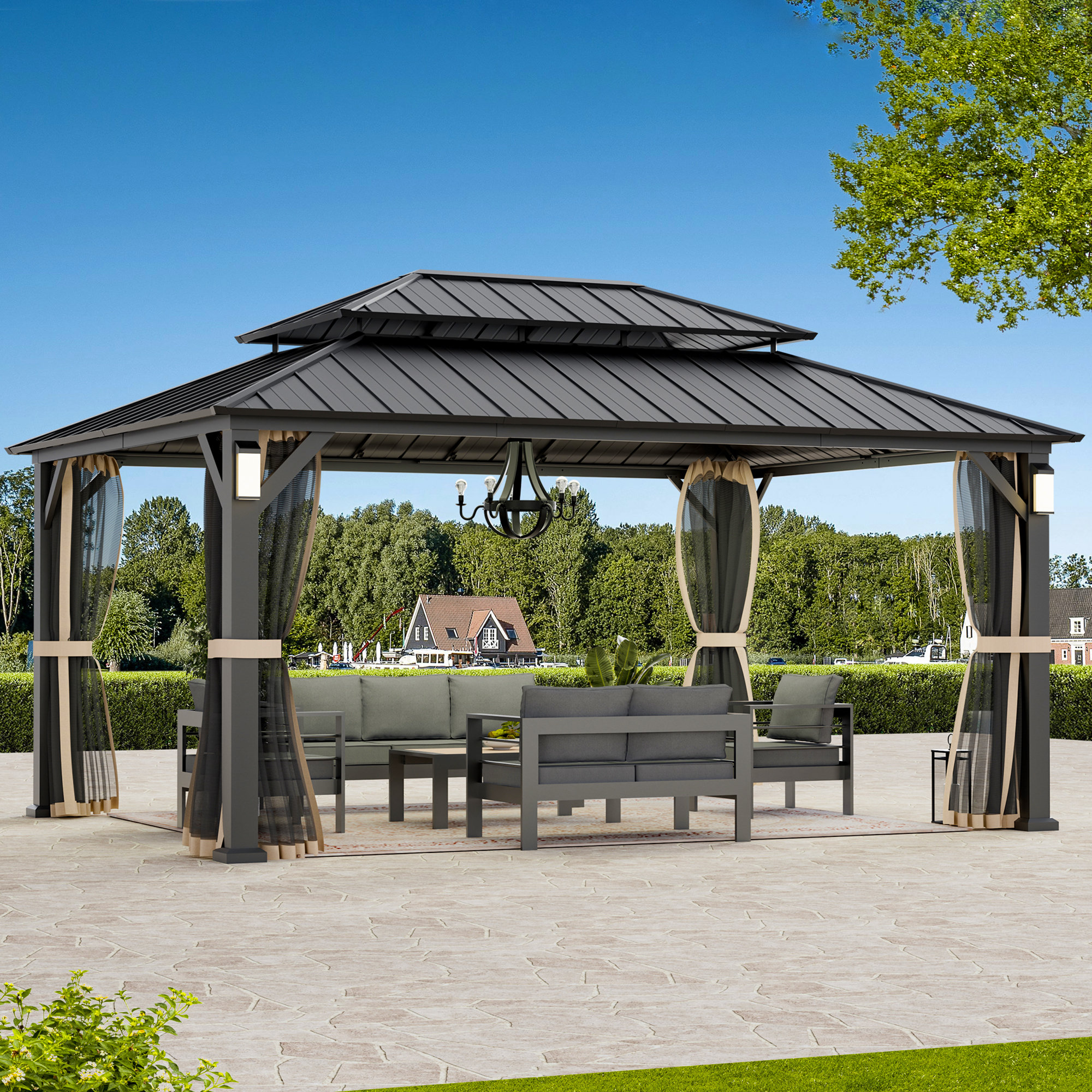 MODERN SHADE OUTDOOR LIVING SPACES Horizon 12 ft. x 16 ft. Hard Top ...