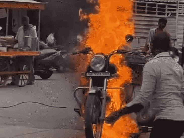 Gorakhpur Bullet Bike Fire | Flames Reach 5 Ft; Sand-Mud Extinguished