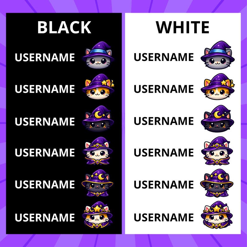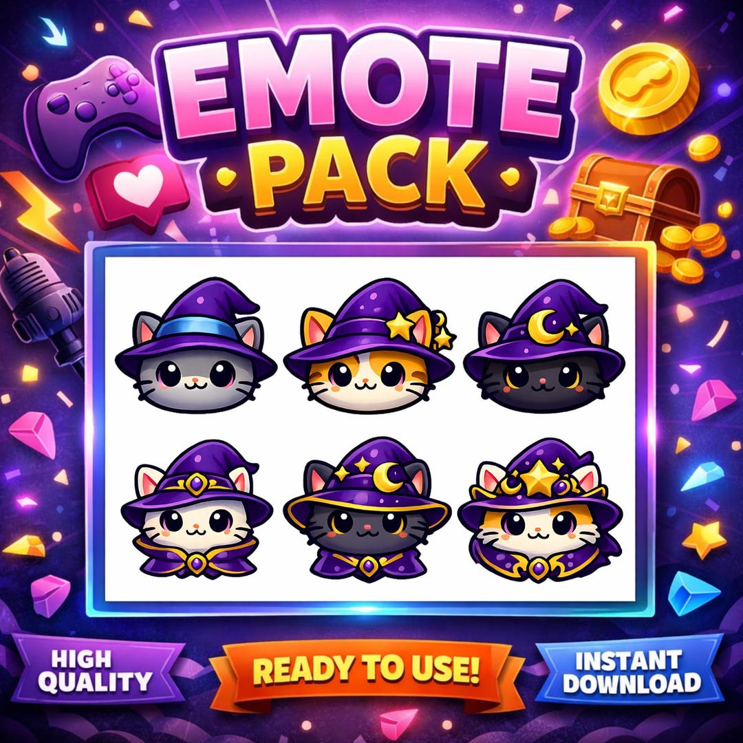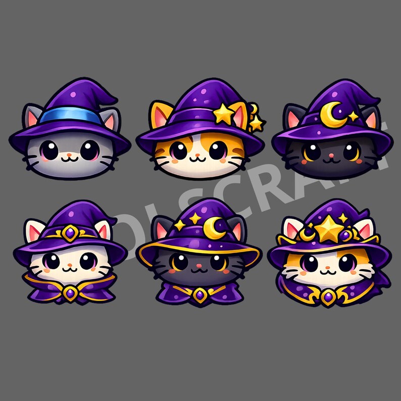 Witch Cat Twitch Emotes Pack, Magical Wizard Cats, Purple Stream Badges ...