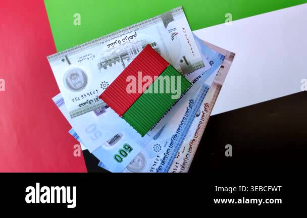 Cargo containers on the UAE flag as a conceptual backdrop for goods ...