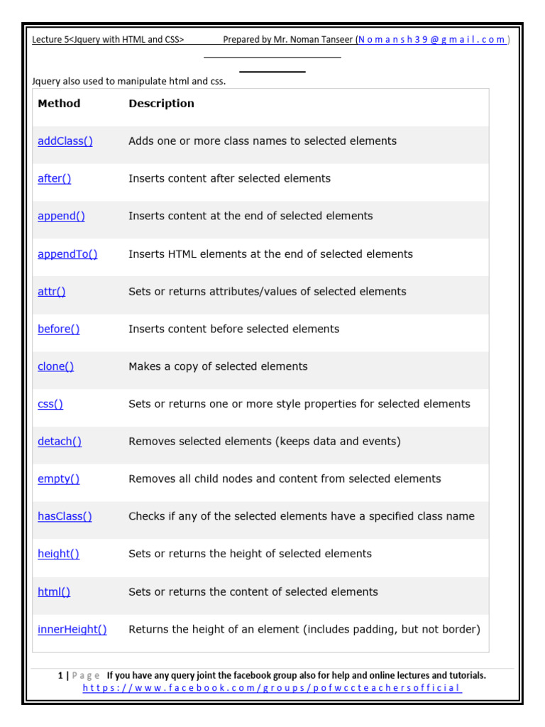 jQuery HTML CSS Methods Guide | PDF | Html | J Query
