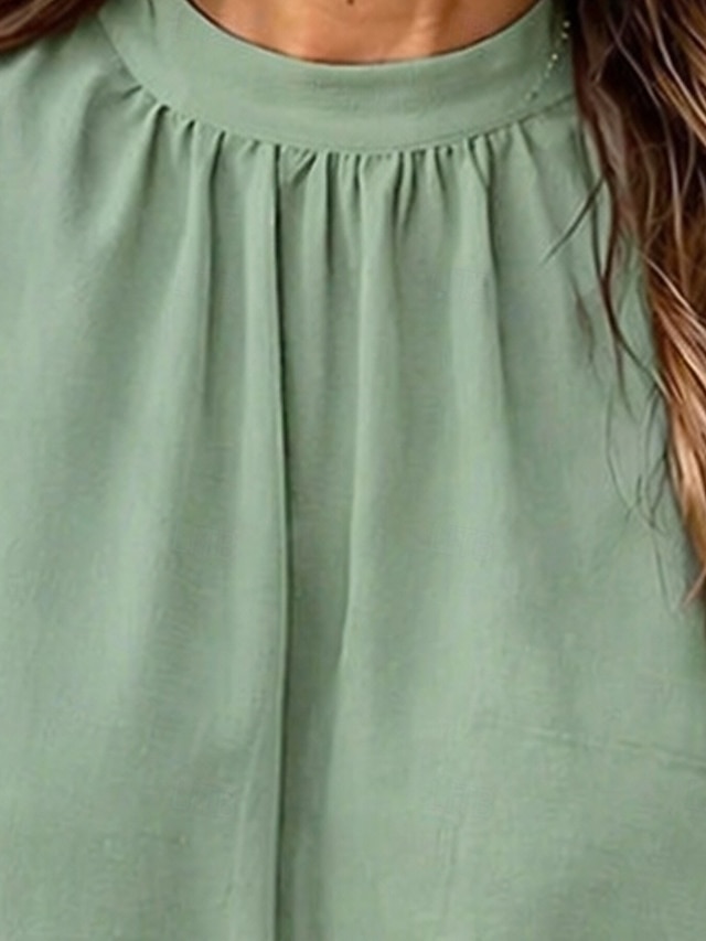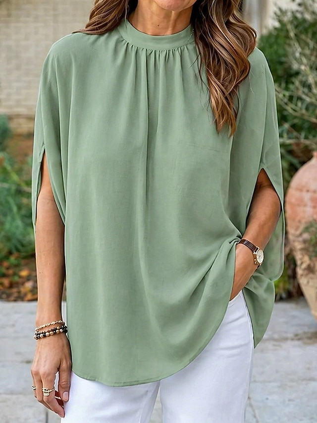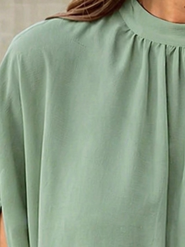 Women's Shirt Summer Shirt Casual Shirt Chiffon Tops Ruched Solid Color ...