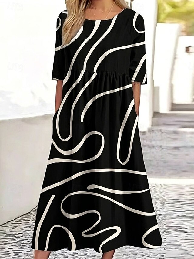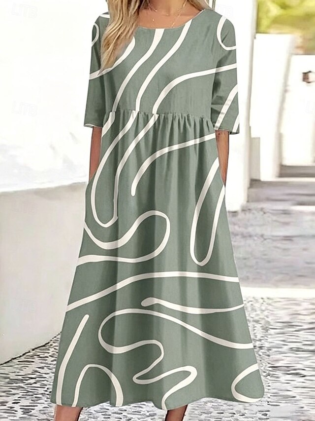 Women's Midi Dress Casual Dress Classic Casual Beach Loose Fit Graphic ...