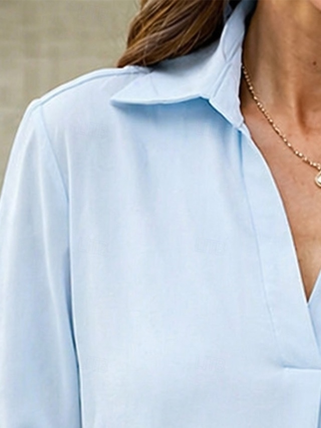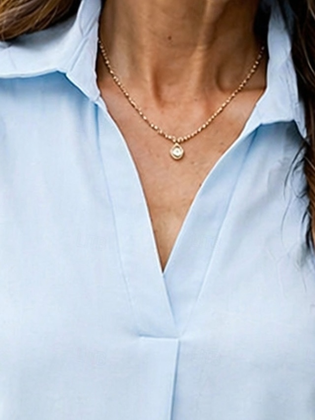Women's Shirt Summer Shirt Casual Shirt Chiffon Tops Solid Color Plain ...