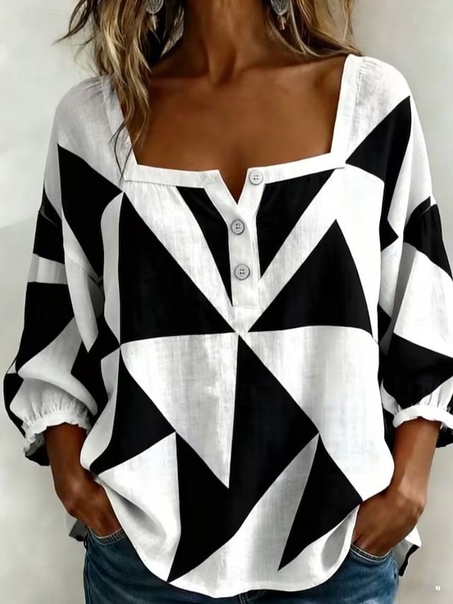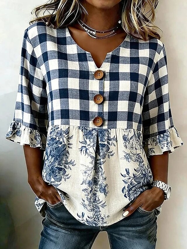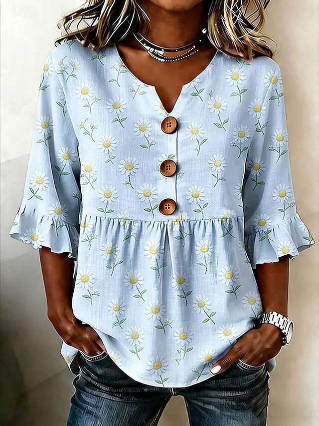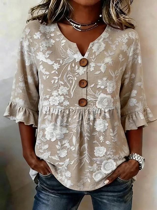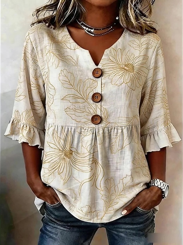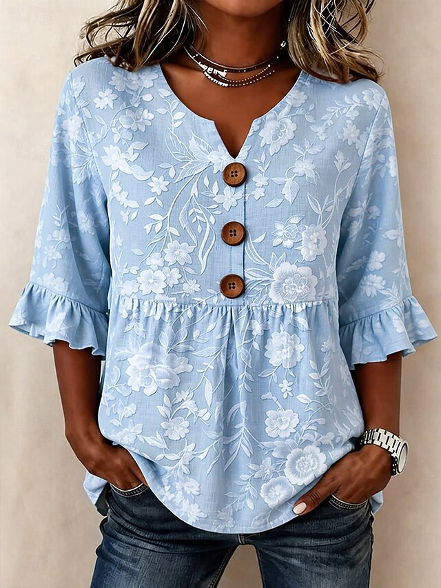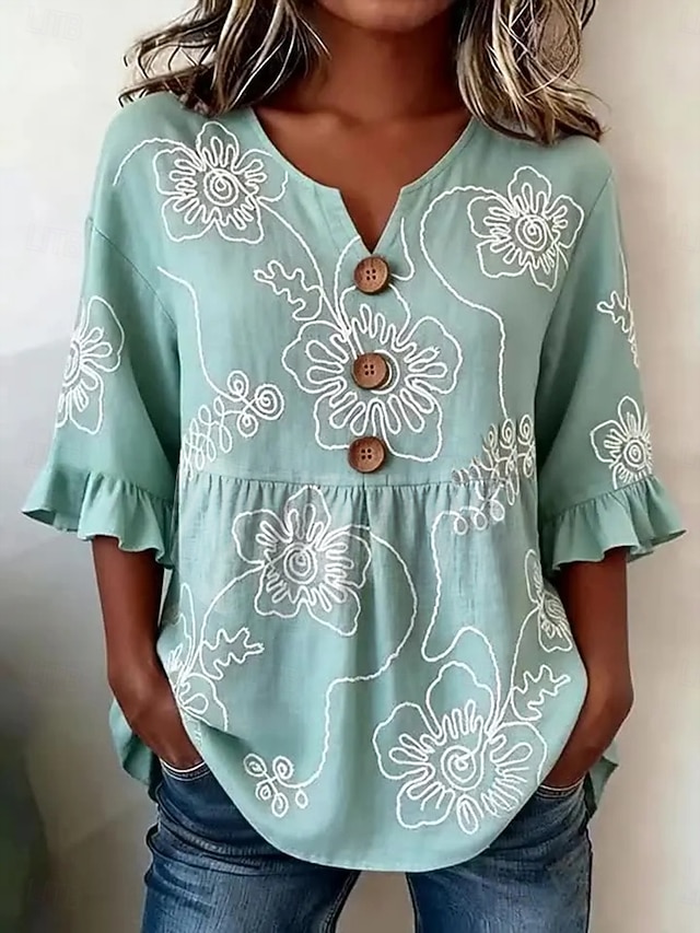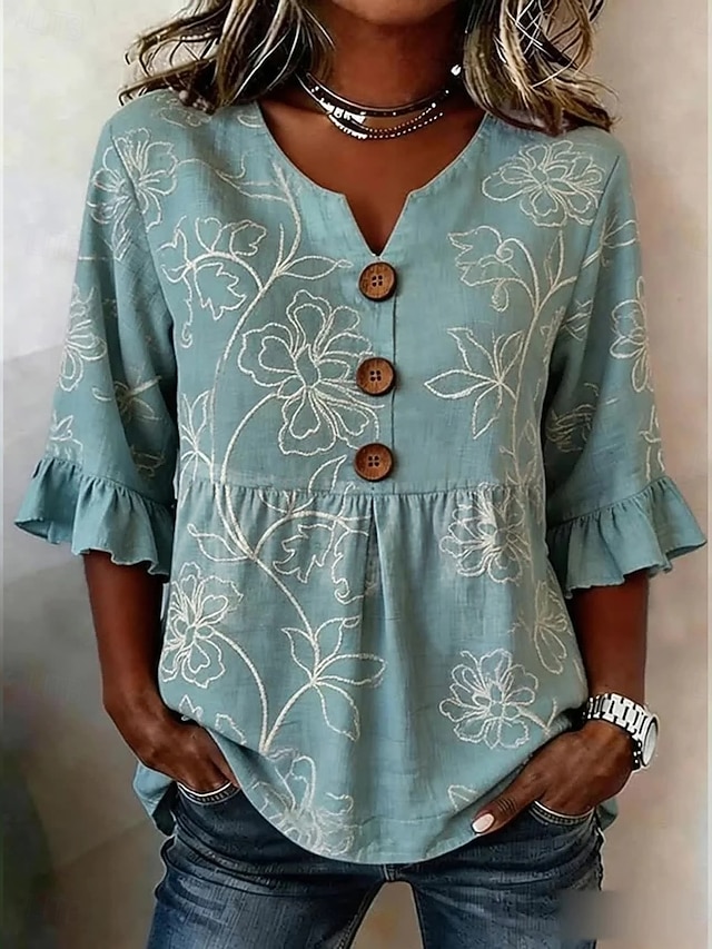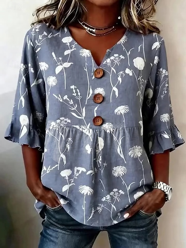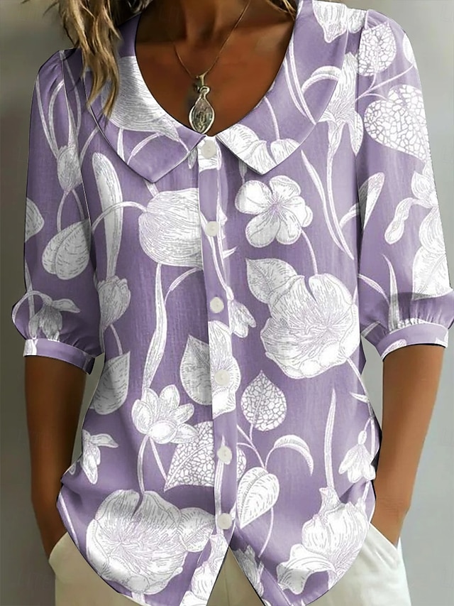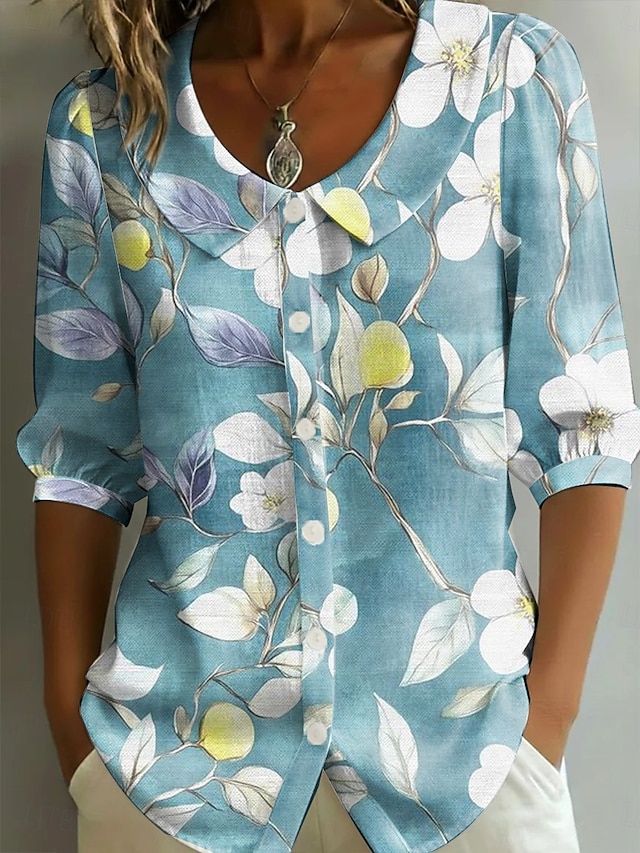 Women's Blouse Buttons Print Floral Graphic Vintage Stylish Modern Half ...