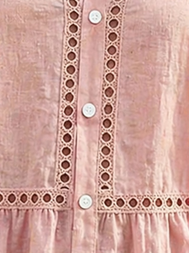 Women's Shirt Summer Shirt Casual Shirt Button Up Shirt Eyelet Solid ...