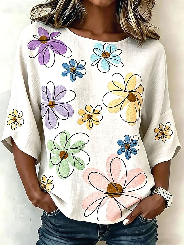 Women's Shirt Print Floral Graphic Vintage Daily Stylish Half Sleeve ...