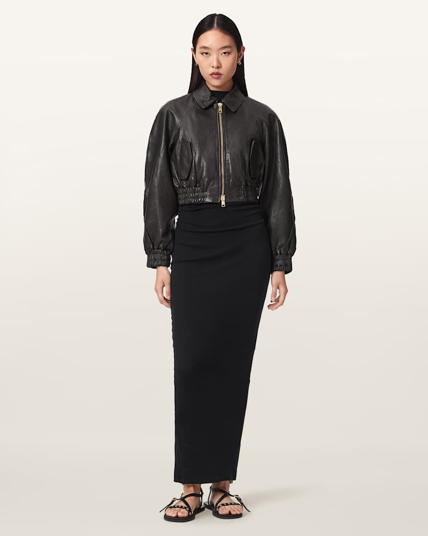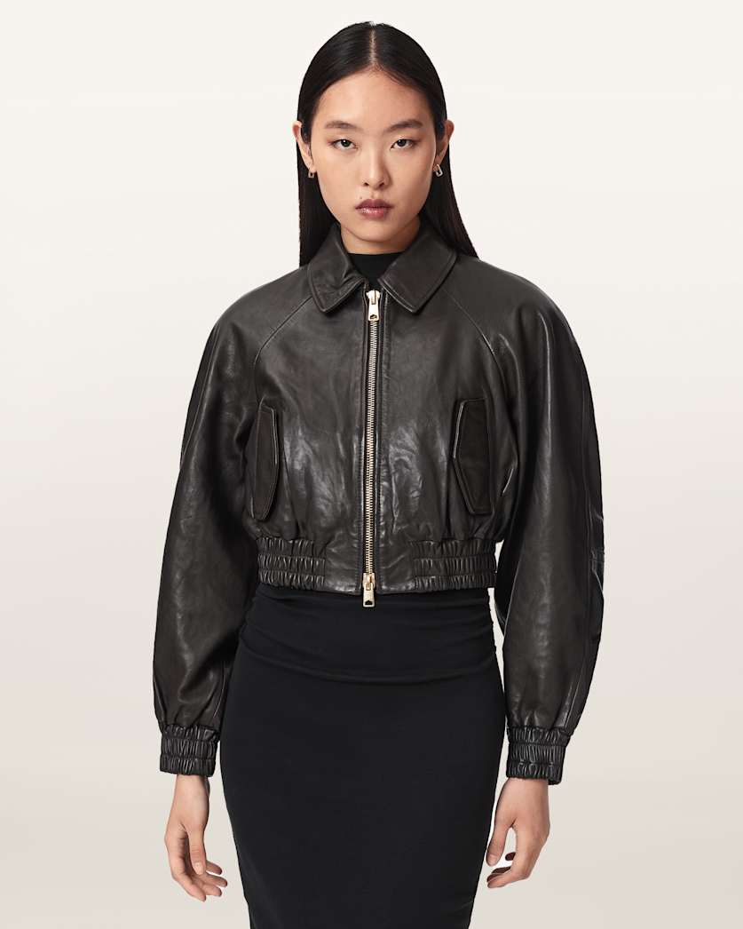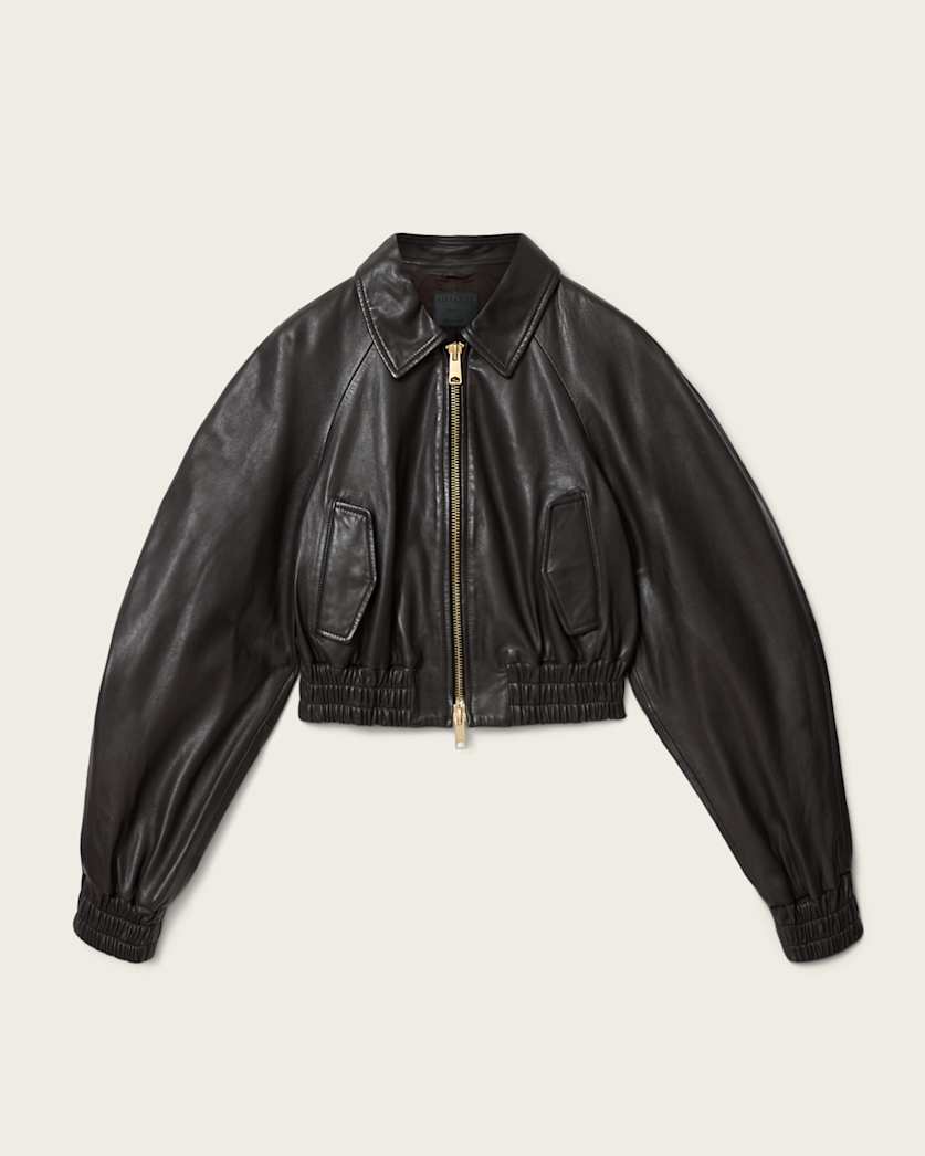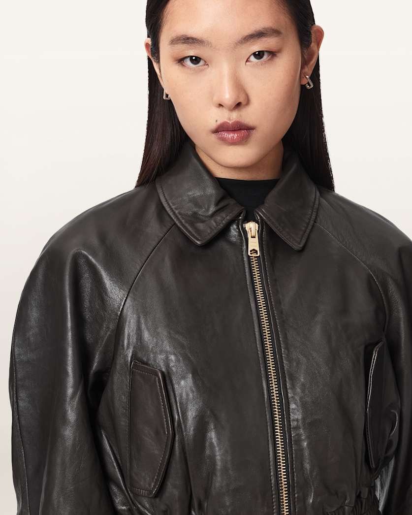 Anouk Cropped Leather Bomber Jacket Bitter Brown | ALLSAINTS Canada