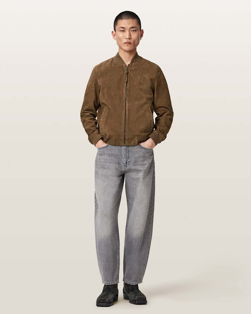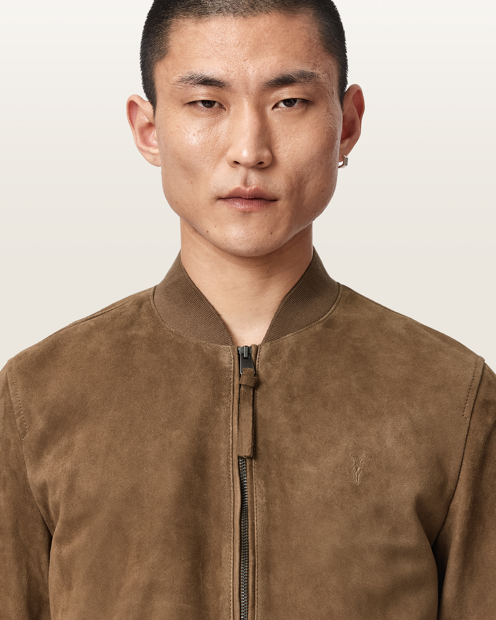 Morton Relaxed Fit Suede Bomber Jacket KAROO BROWN | ALLSAINTS