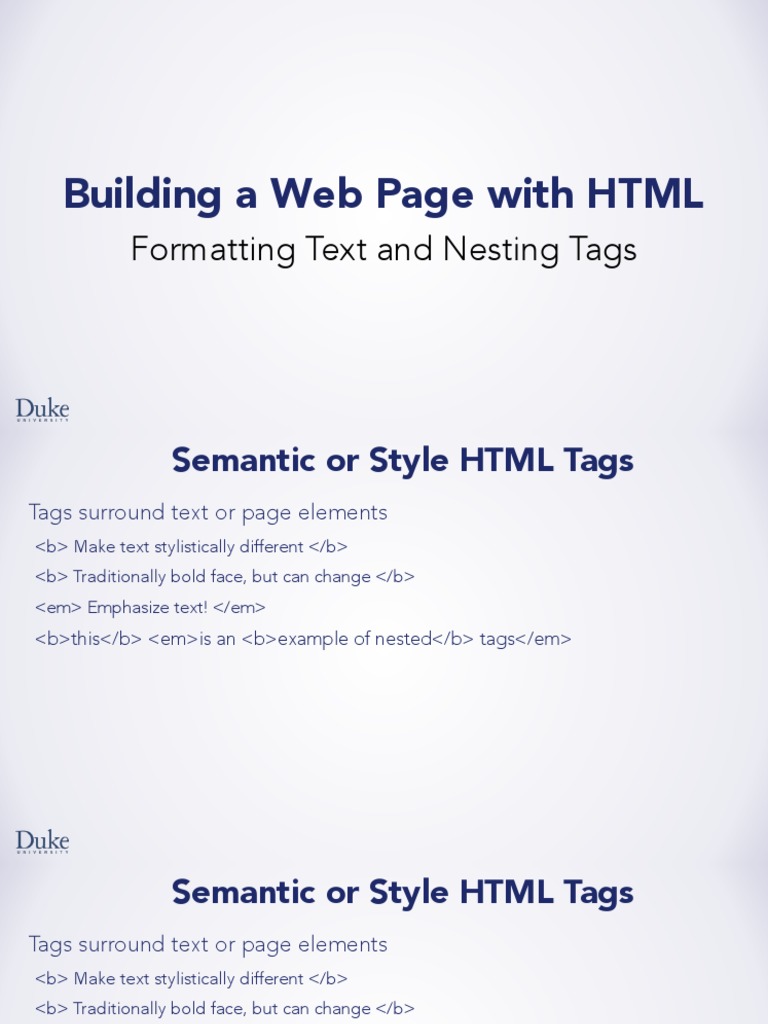 Building A Web Page With HTML: Formatting Text and Nesting Tags | PDF ...