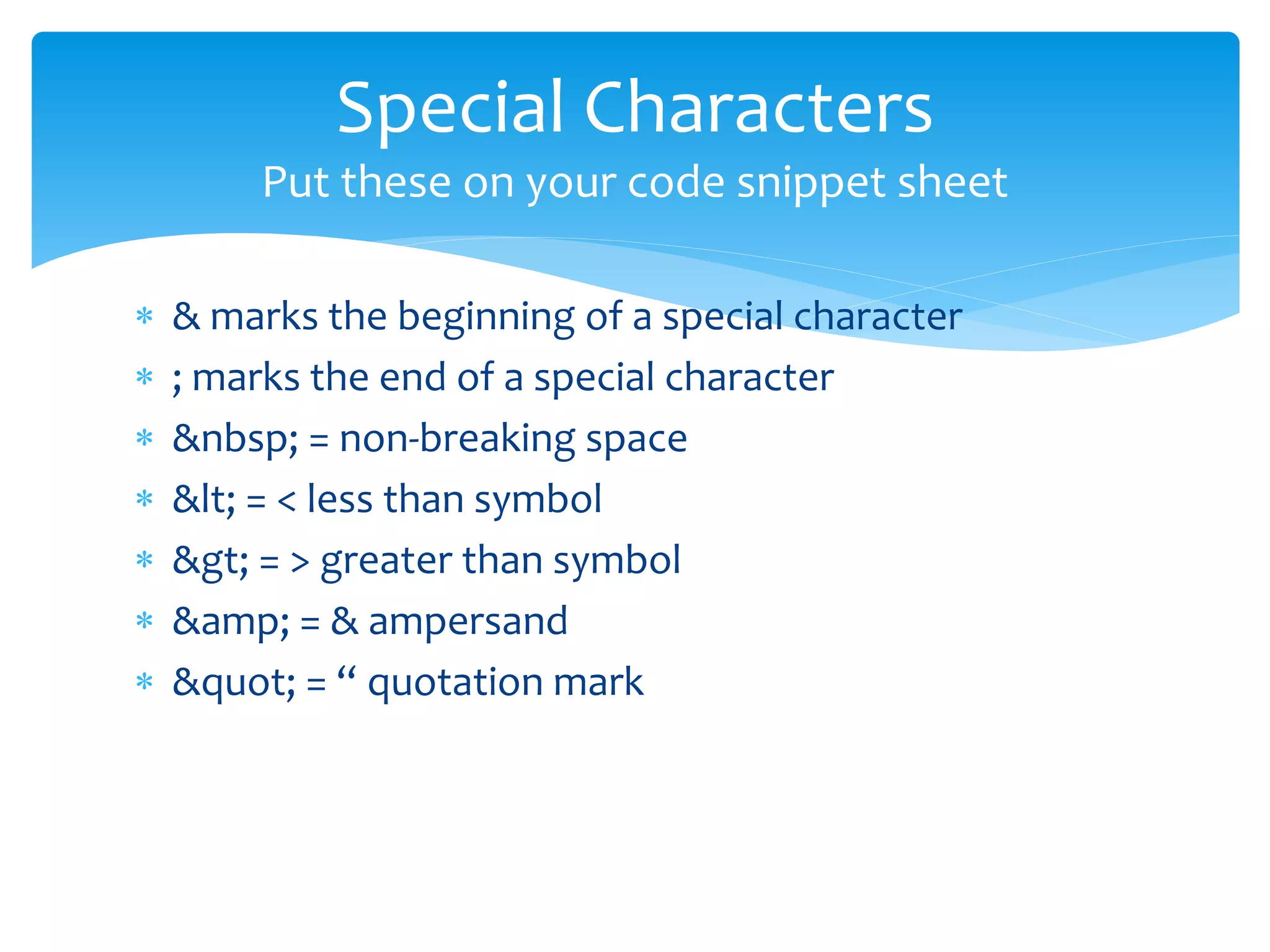 HTML Character Entity References Cheat Sheet | Next Step InfoTech