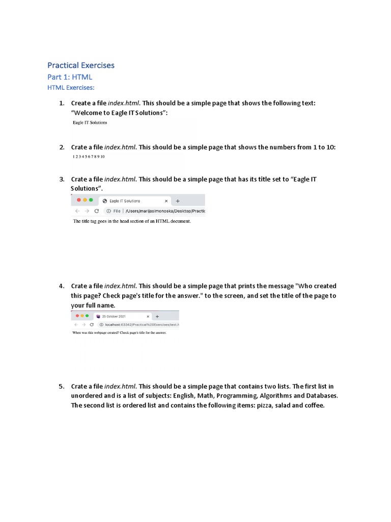 HTML Practical Exercises for Students | PDF | Html | World Wide Web ...