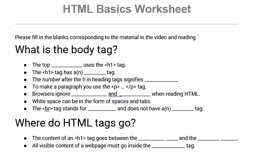 Html Practice Exercises: Html Worksheet – TMBI