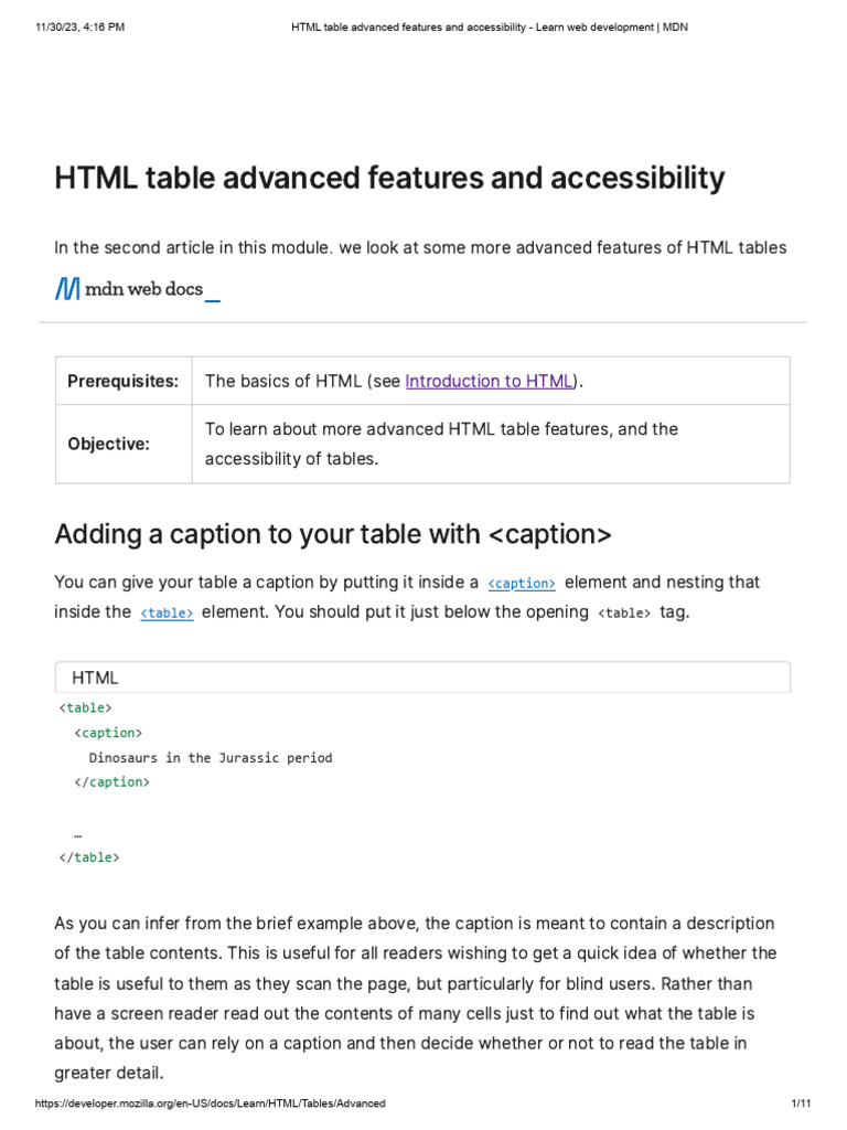 HTML Table Advanced Features and Accessibility - Learn Web Development ...