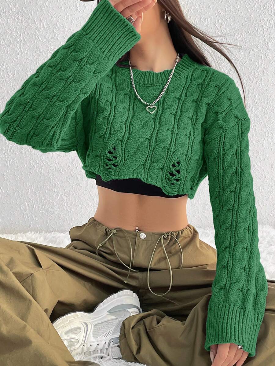 SHEIN Unity Women's Short Cable Knit Sweater | SHEIN UK