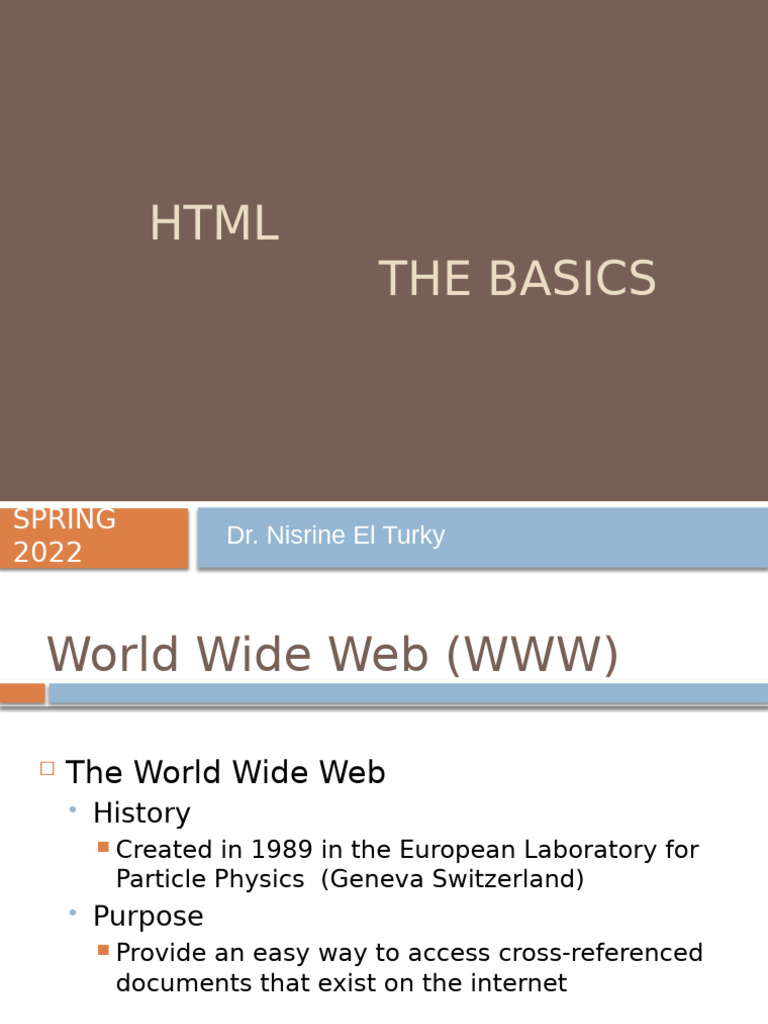 Lecture 8 - HTML.PPTX | PDF | Html | World Wide Web