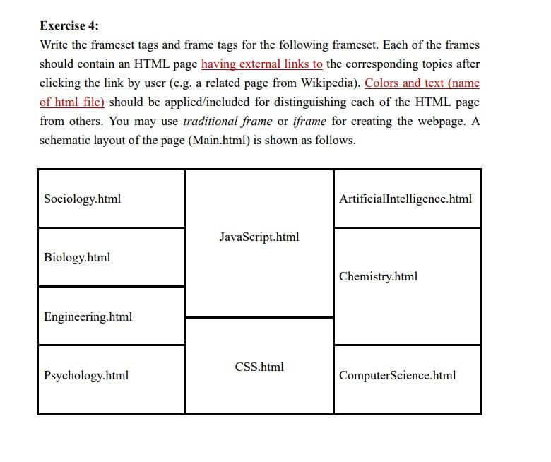 Solved Exercise 4: Write the frameset tags and frame tags | Chegg.com