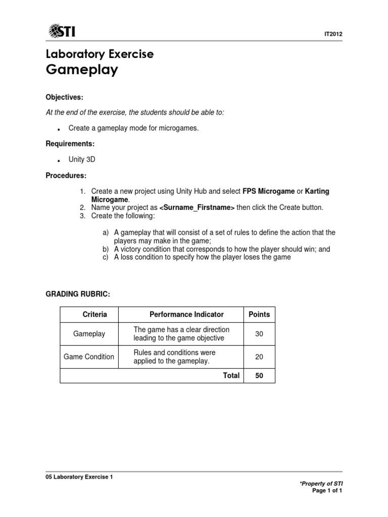 04 Laboratory Exercise 1 - IT 04 Laboratory Exercise 1 *Property of STI ...