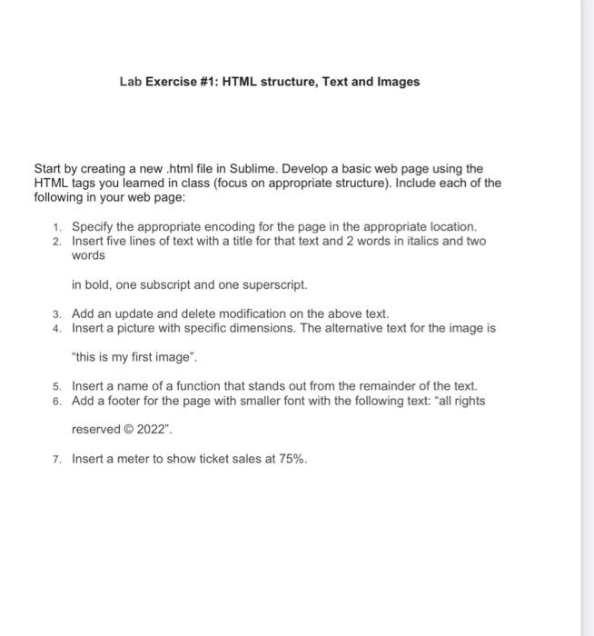 Solved Lab Exercise #1: HTML structure, Text and Images | Chegg.com