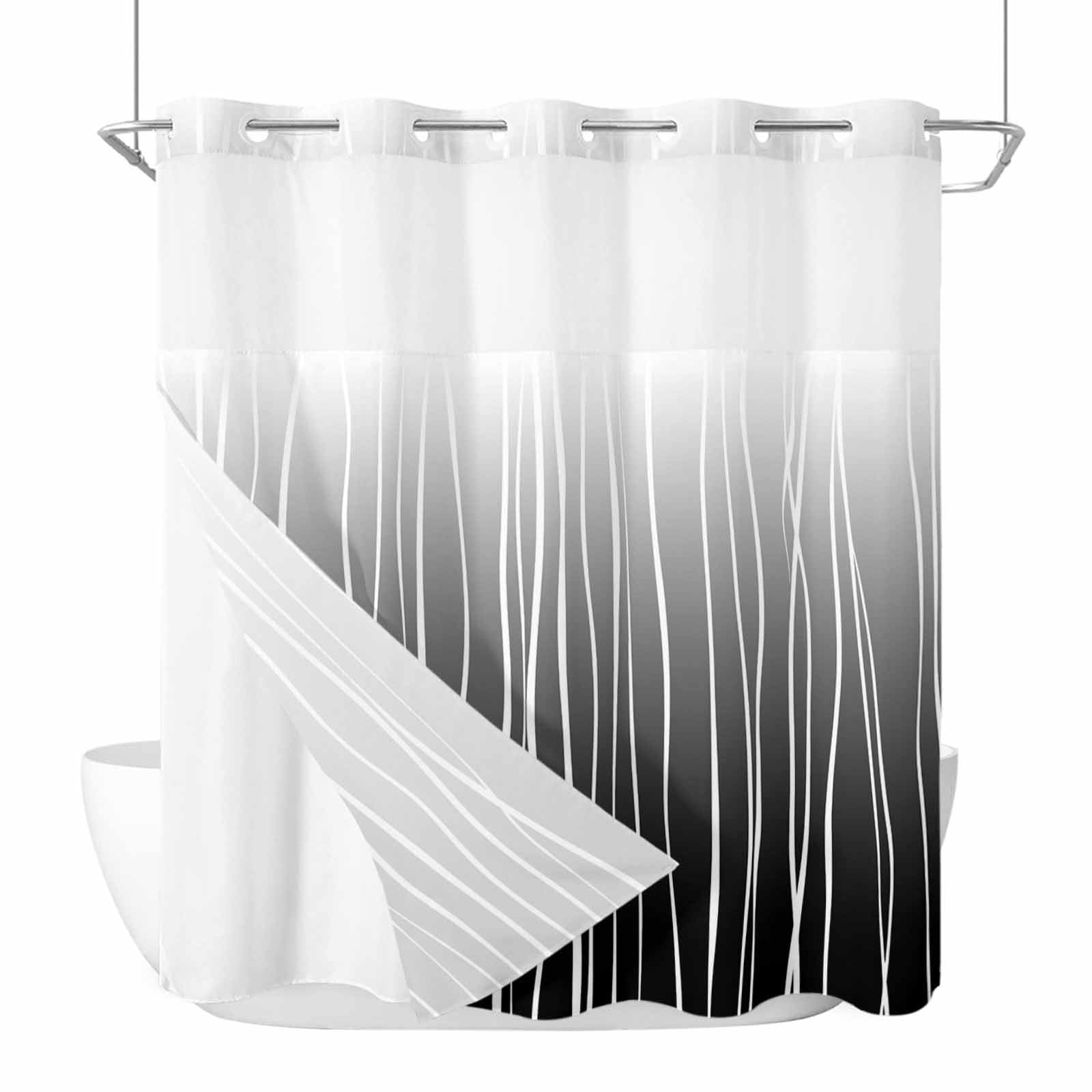 Abstract Stripes on Black Background No Hook Shower Curtain with Snap ...