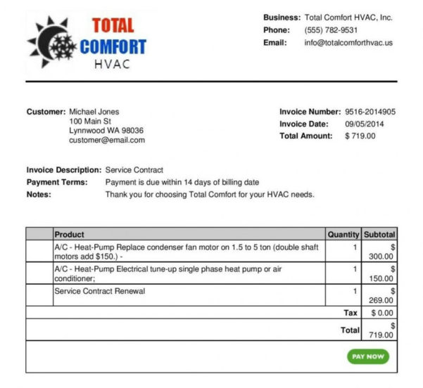 Hvac Invoice Template: Get The Perfect Bill For Your Business ...