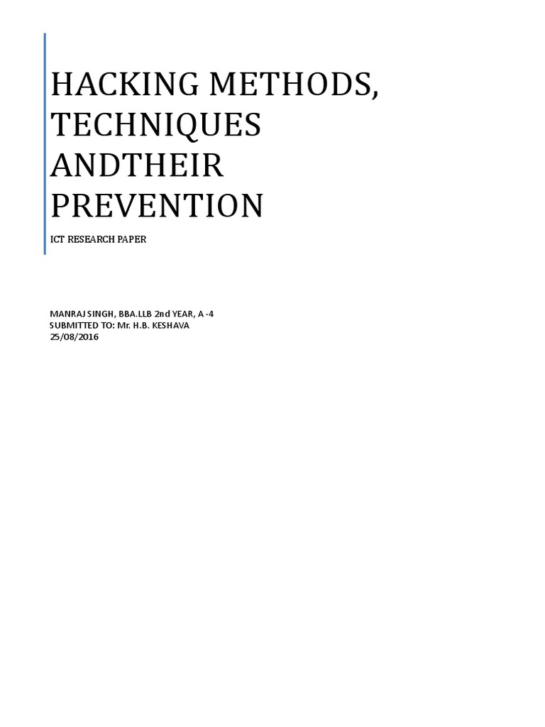 (PDF) Hacking Attacks, Methods, Techniques And Their Protection Measures