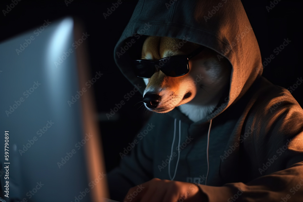 Cute Shiba Inu wearing a hoodie and glasses, posing as a computer geek ...