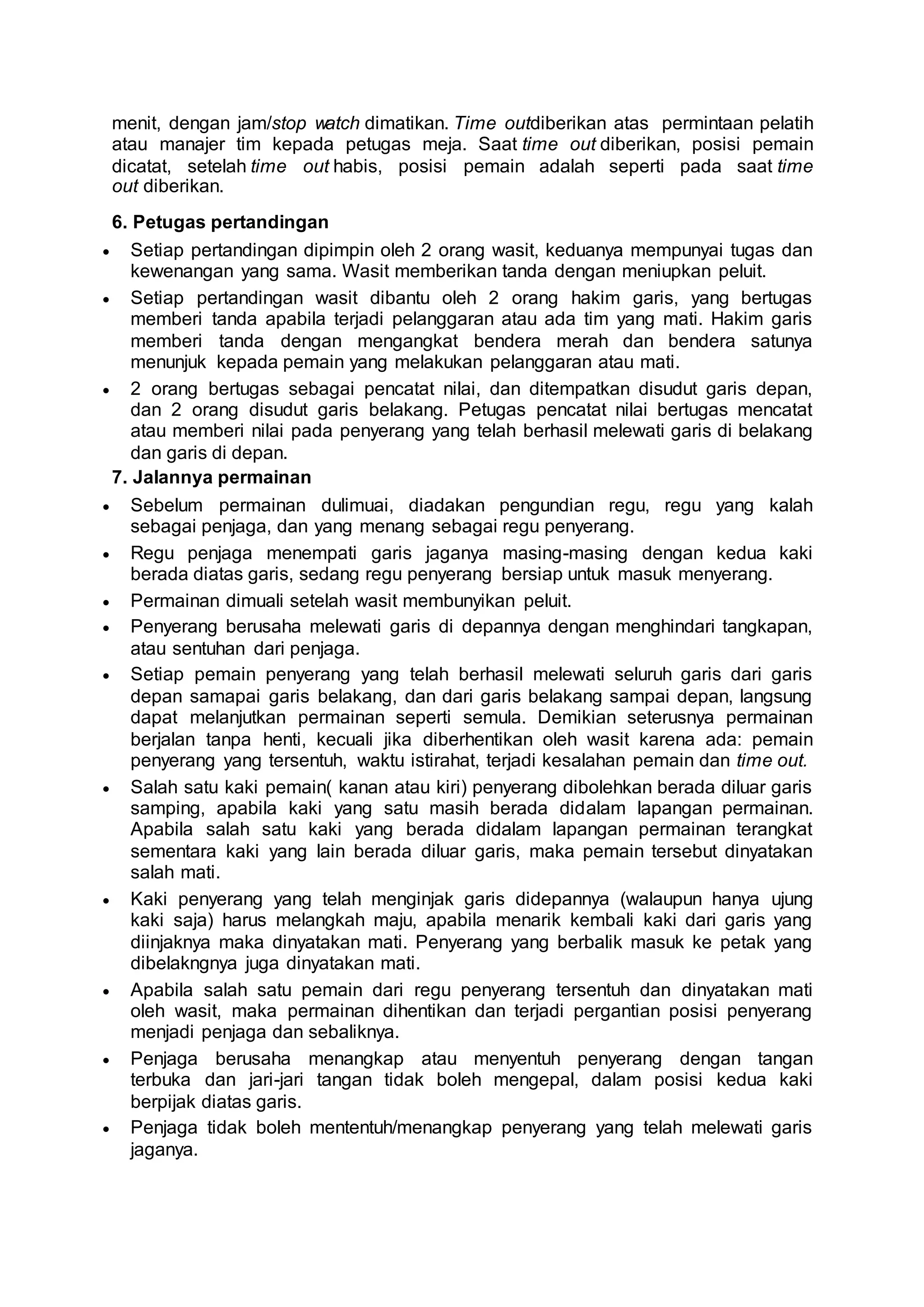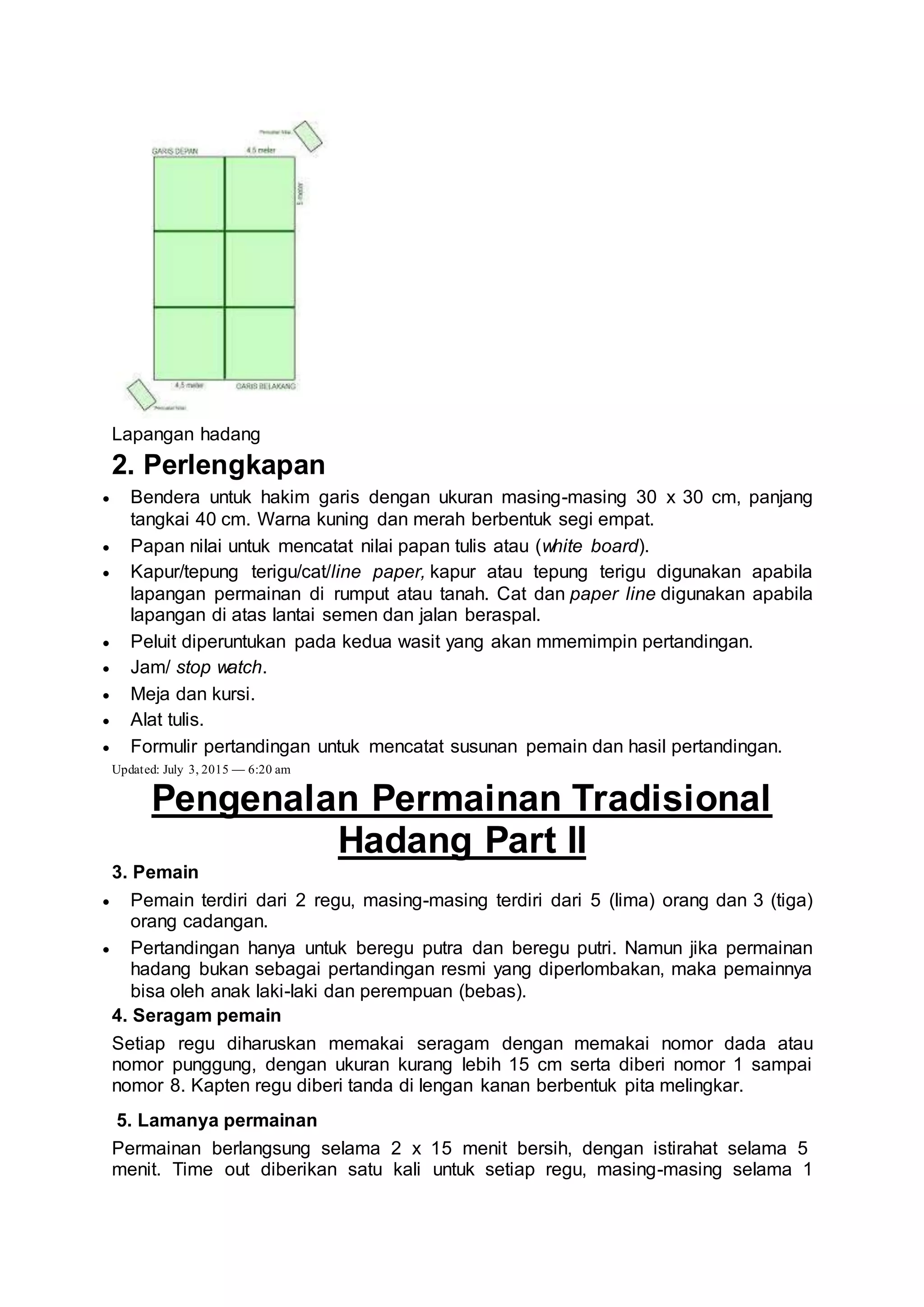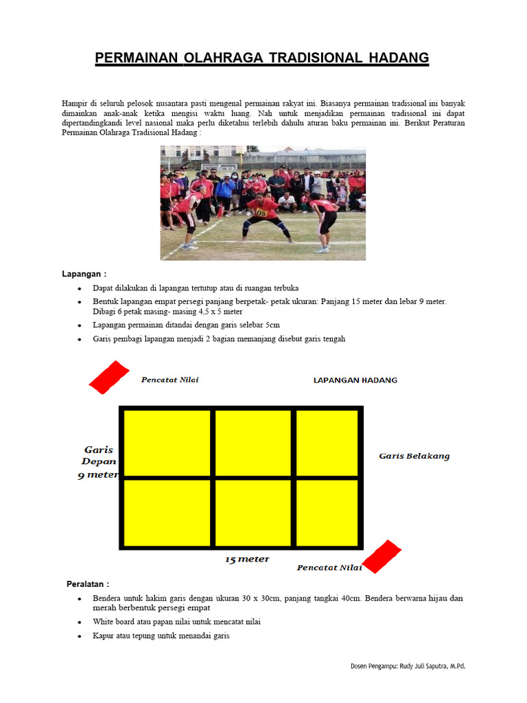 Peraturan Permainan Olahraga Tradisional Hadang | PDF