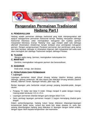 Pengenalan permainan tradisional hadang part i | DOCX