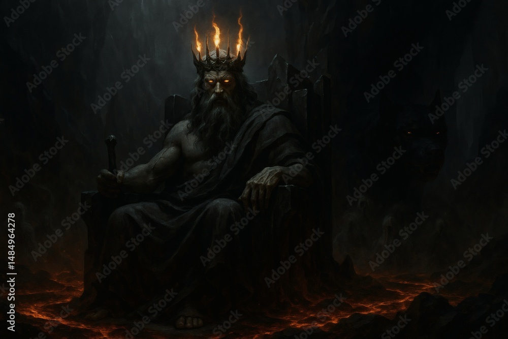 Hades on Obsidian Throne with Cerberus, Greek God of the Underworld in ...