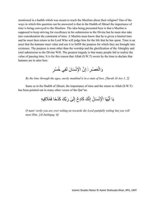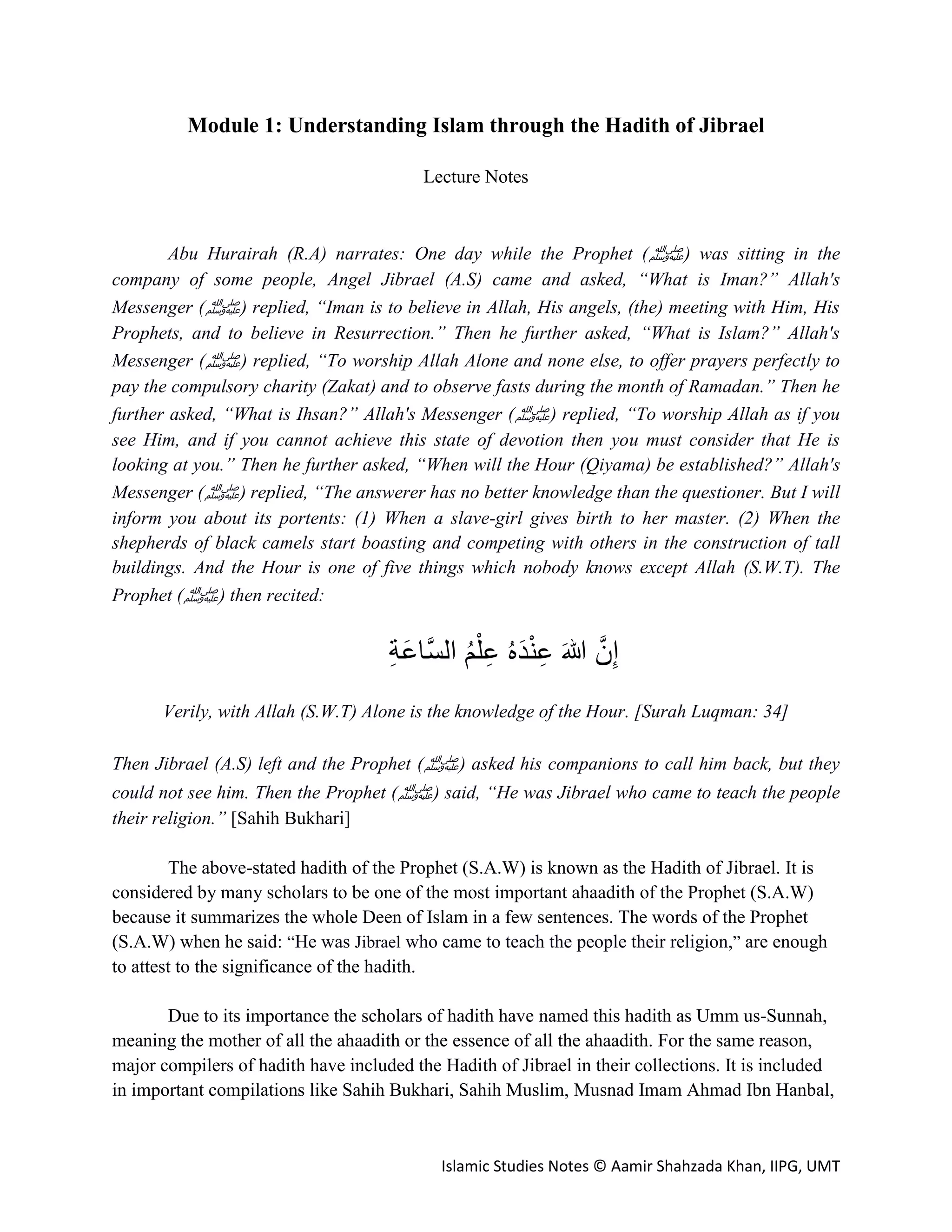 Lecture Notes for Module 1 - Hadith of Jibrael.pdf | Islam | Religion ...
