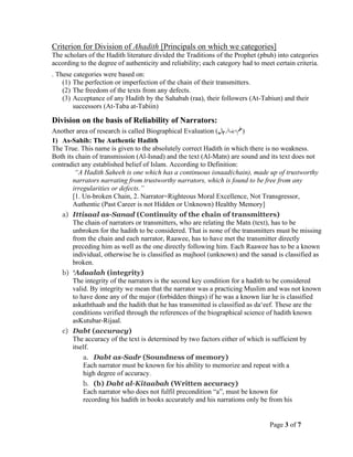 Categories of Hadith - Additional Notes - Categories of Hadith The ...