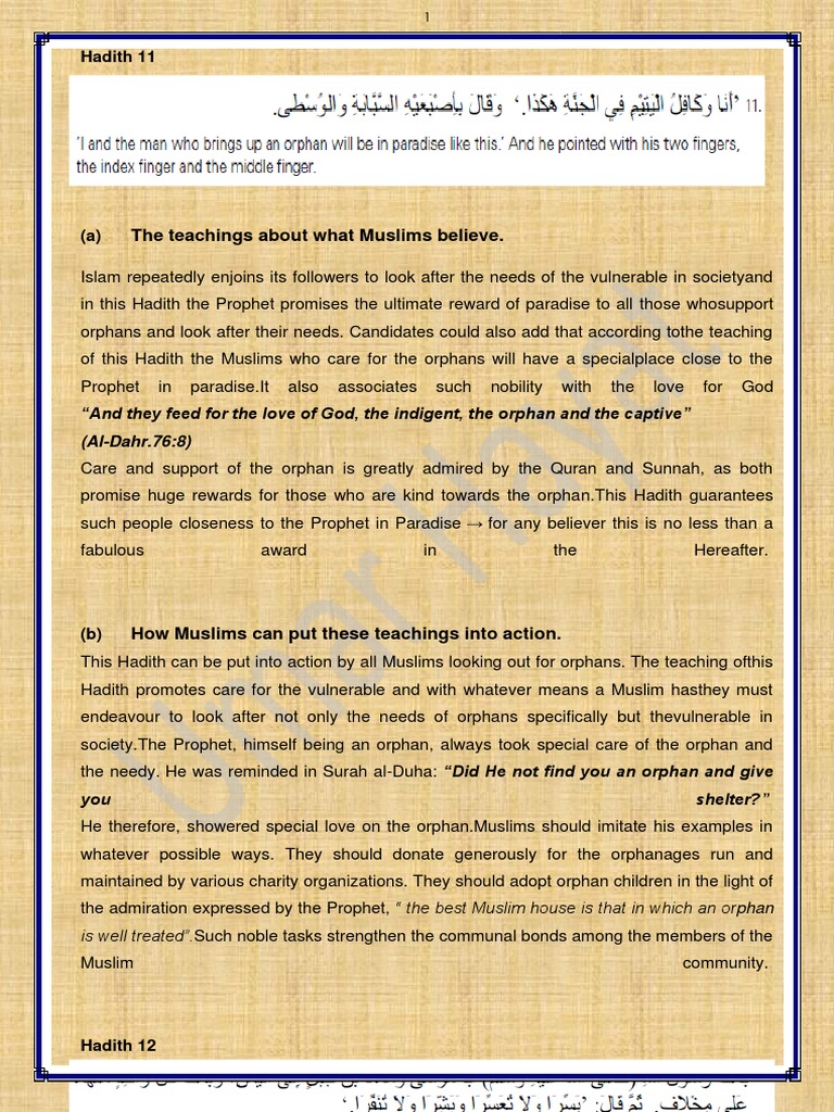 Islamiyat Hadith 1-5 With Explanation (2058 CAMBRIDGE O LEVEL NOTES | PDF