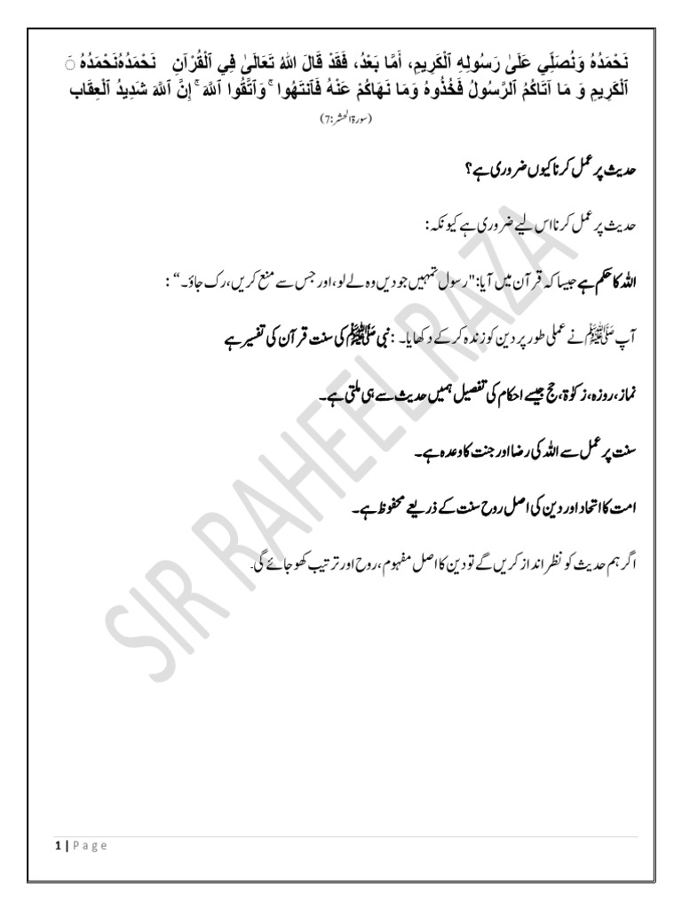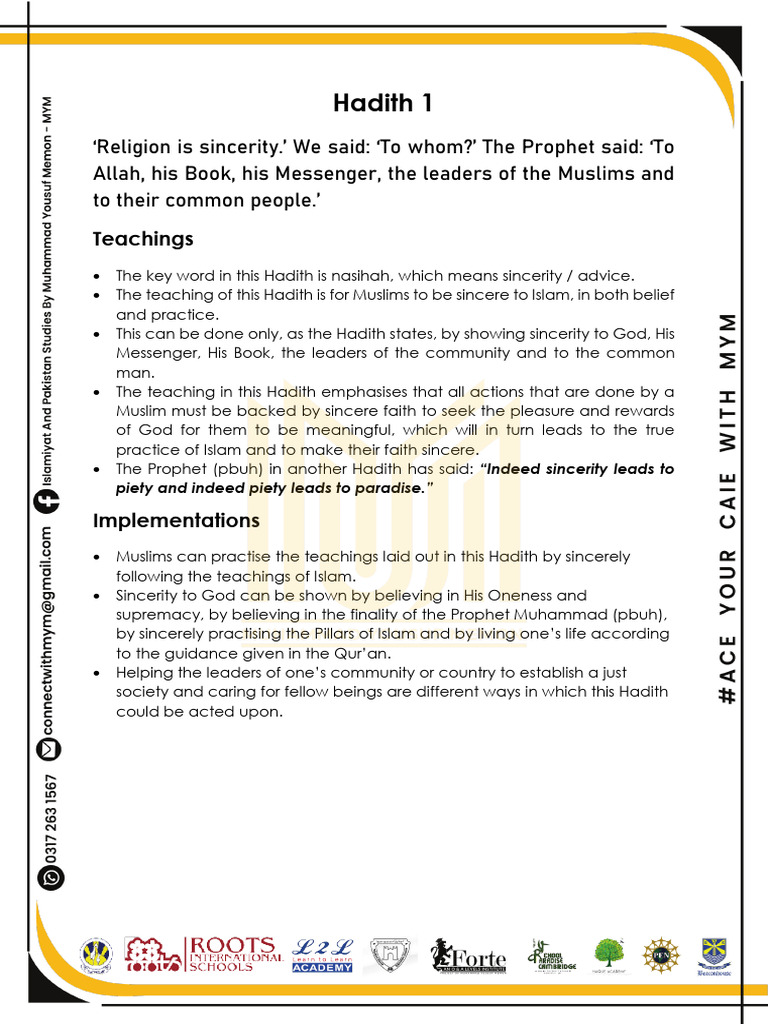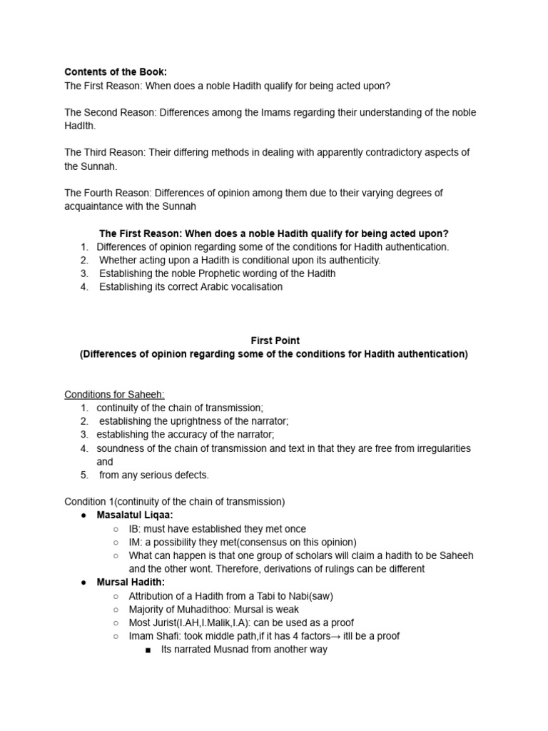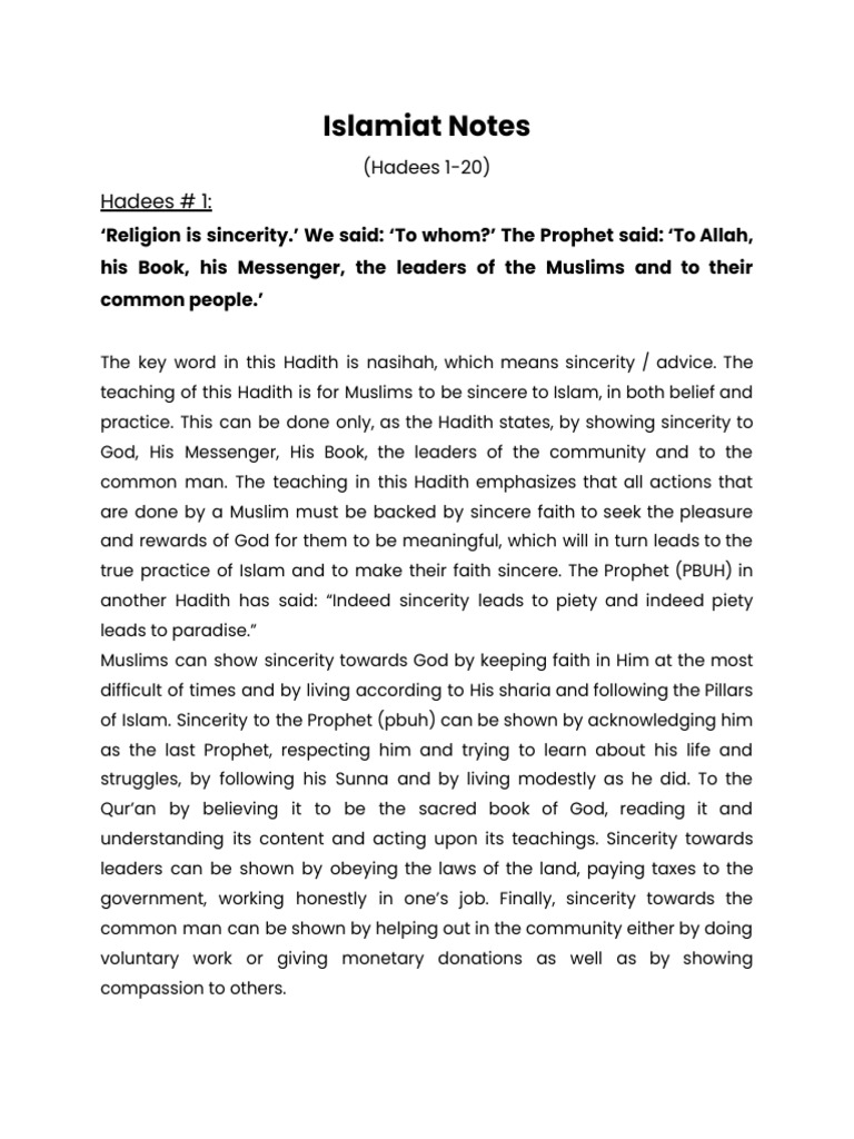 Notes for Hadith 1 - May – 2021 Syllabus and notes for Hadith One March ...