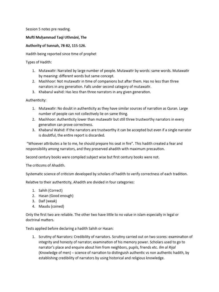Types and Authenticity of Hadith Explained | PDF | Hadith | Muhammad