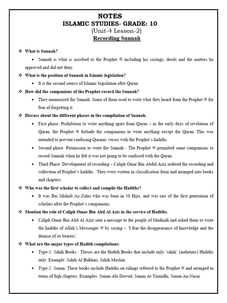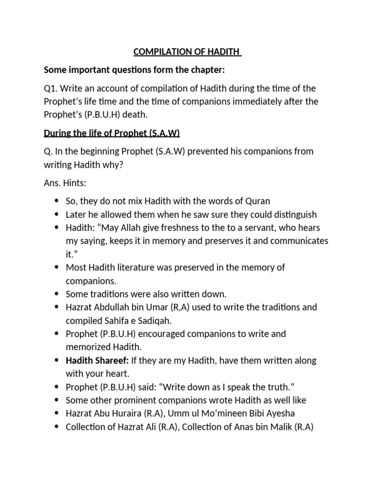 History And Compilation Of Hadith O Level Notes - Infoupdate.org