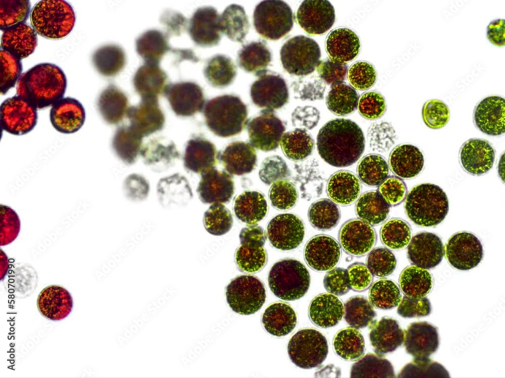 Light microscope footage of Haematococcus sp. algae, showing the ...