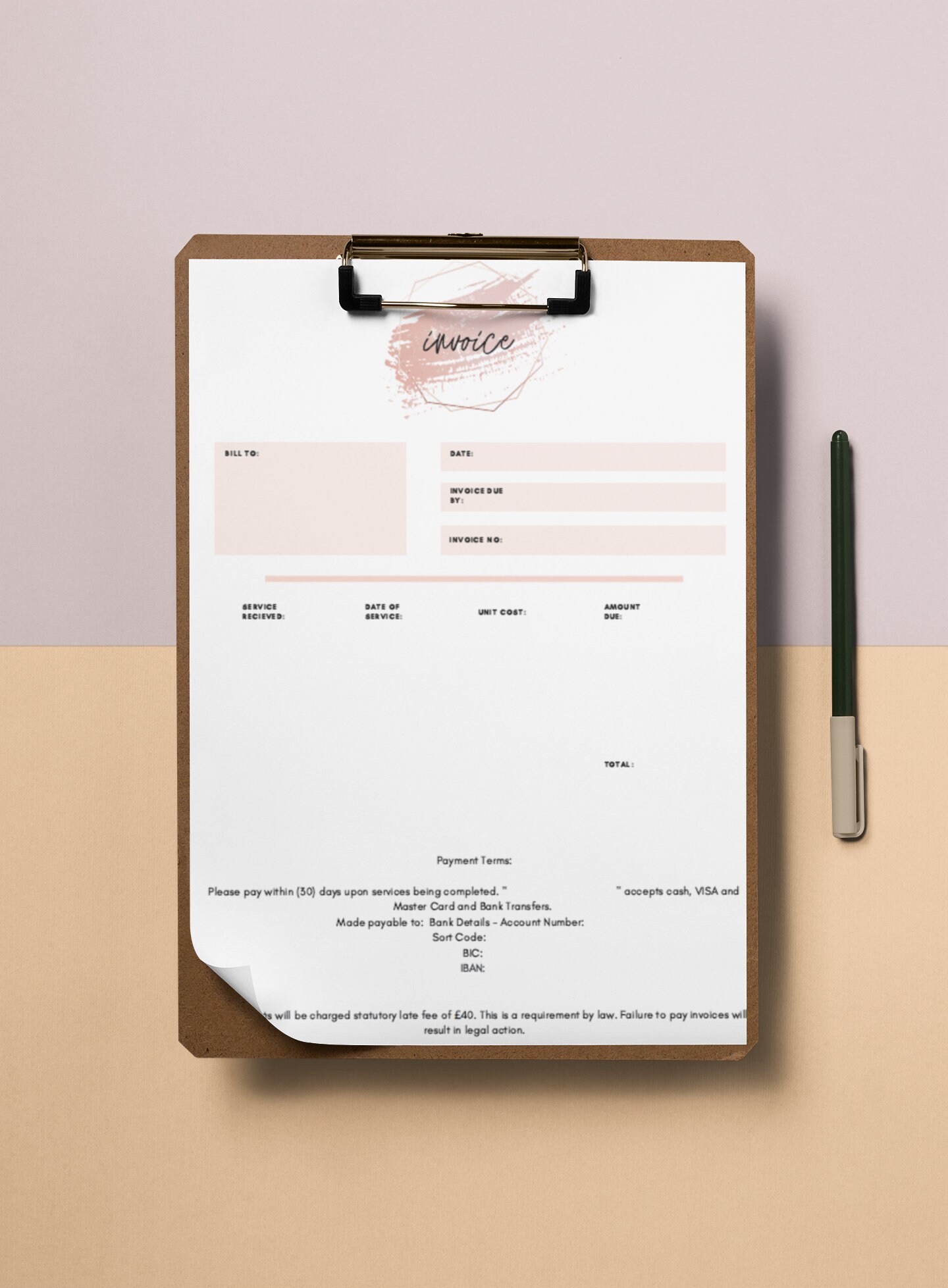 INVOICE TEMPLATE Salon Invoice Template Small Business Template Pink ...