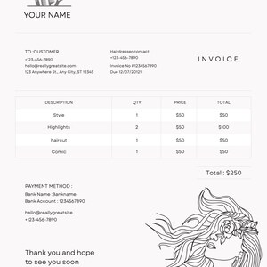 Hairdresser Service INVOICE Template Printable PDF - Etsy