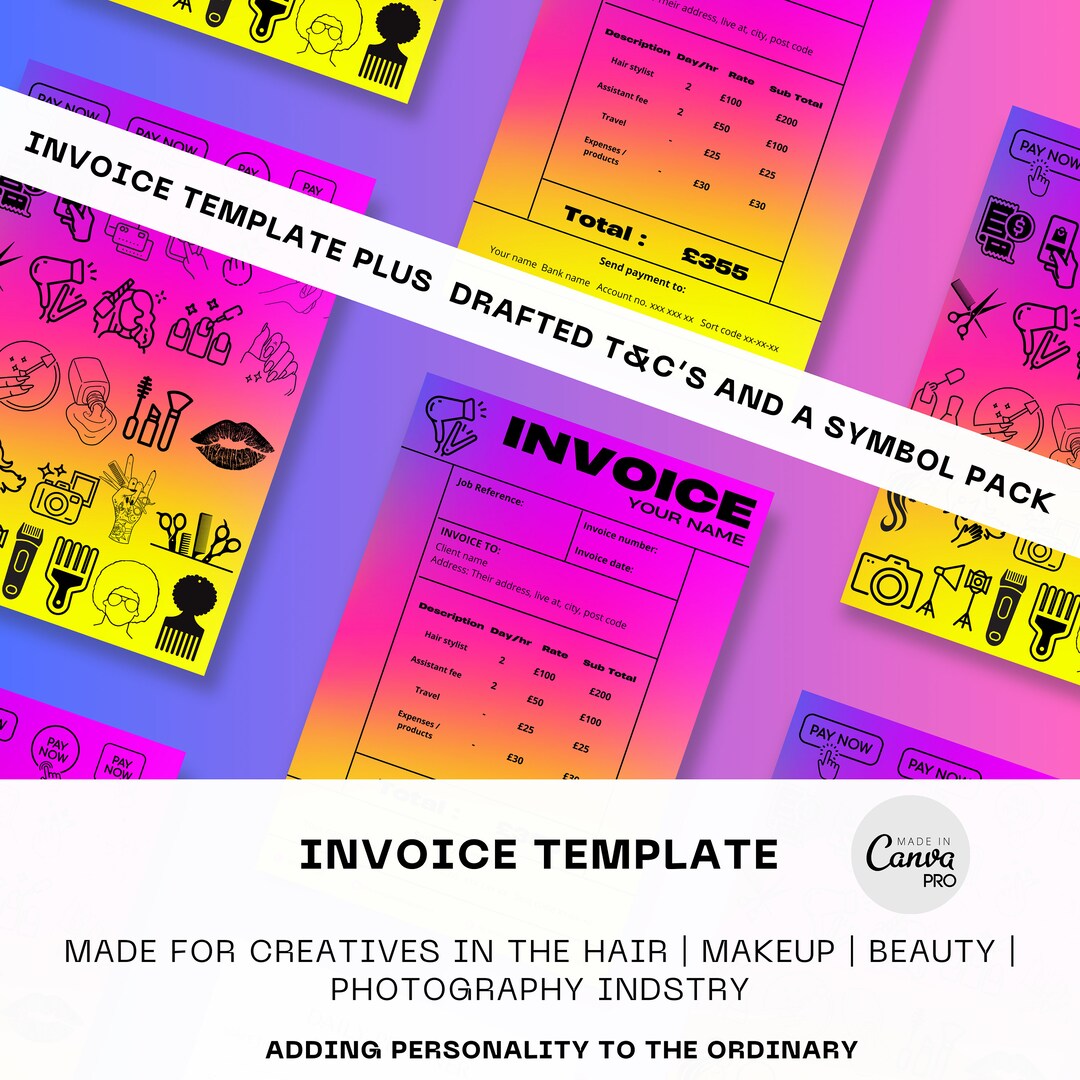 Colourful Canva INVOICE TEMPLATE for Creative Freelancers. Hair Beauty ...