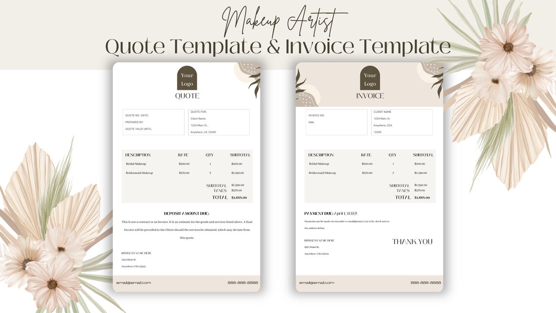 EDITABLE Invoice, Business Invoice, Makeup Invoice, Hair and Makeup ...