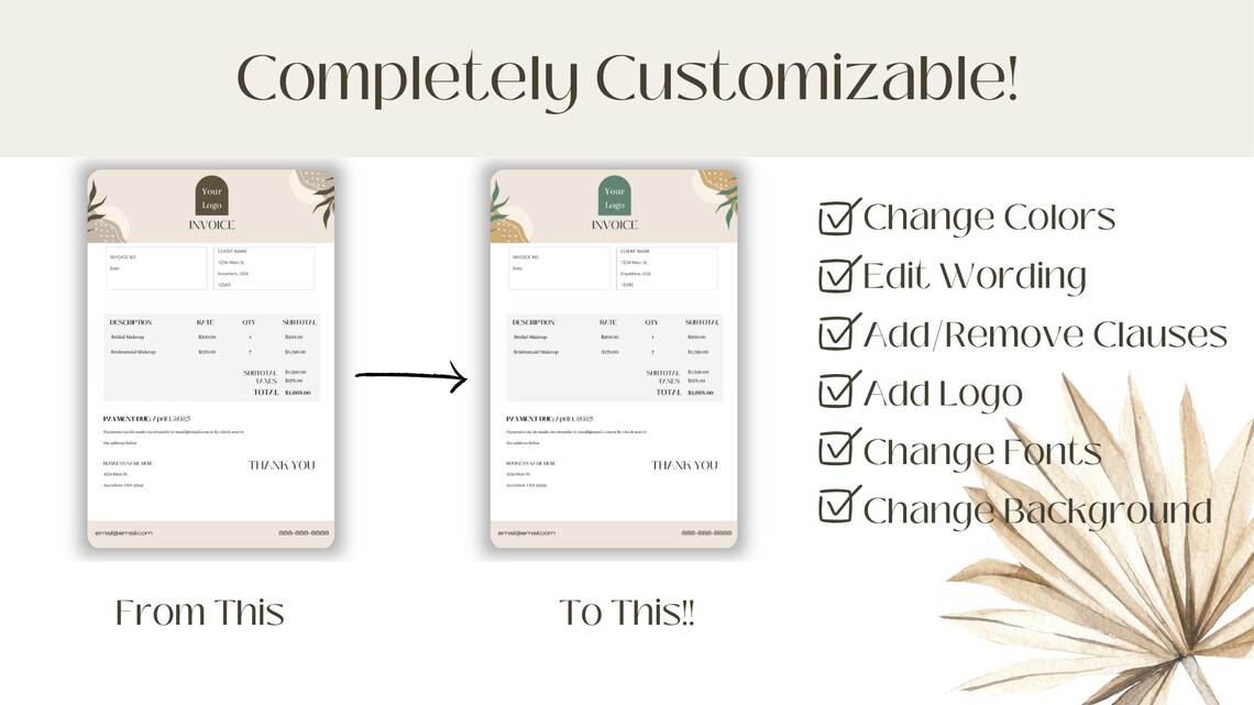 Boho Editable Invoice & Quote Templates for Salon/small Business/spa ...