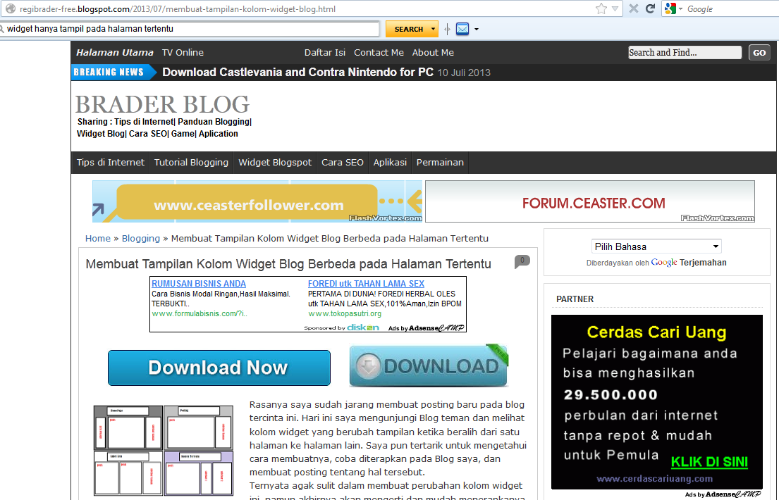 Menampilkan Widget di Halaman Tertentu pada Blogger - Warung Internet