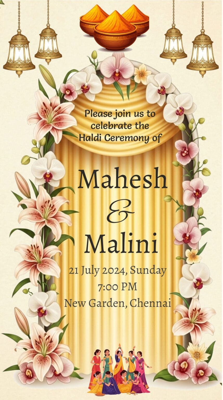 Haldi Ceremony Digital Invitation With Ethnic Floral Design Backgrounds ...