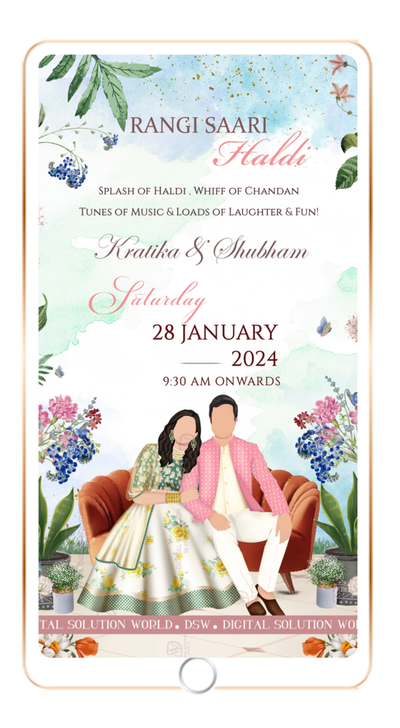 Floral Theme Haldi Ceremony Invitation Card with Graceful Couple ...