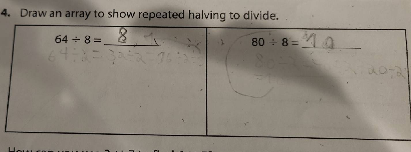 Solved: Draw an array to show repeated halving to divide. [Math]