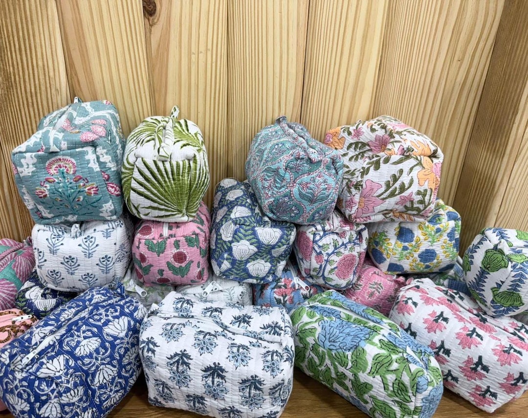 Handmade Quilted Cotton Makeup Pouch Vanity Case Travel Cosmetic ...