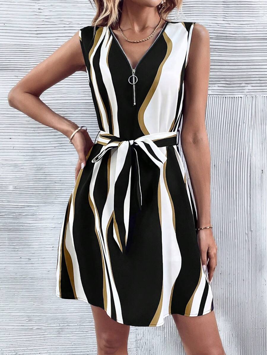 SHEIN LUNE Colourblock Half Zip Belted Dress | SHEIN UK