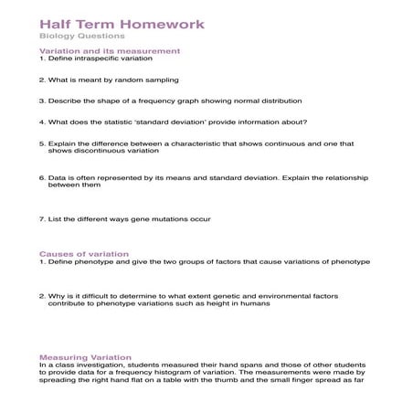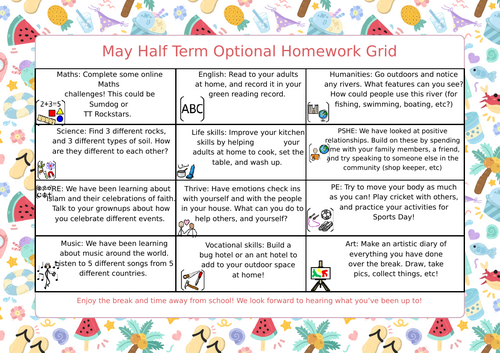 Half Term Homework Ideas Year 2 | PDF | Homework | Worksheet