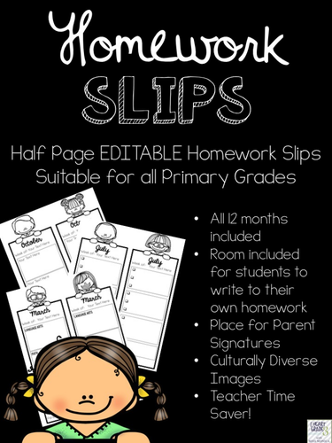 Editable Half Page Homework Slips by I Heart Grade 3 | TPT